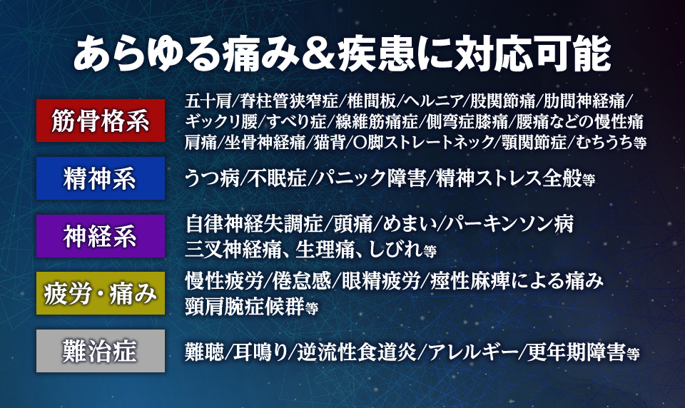 - 撫でるだけで症状の原因を特定完了、どこが悪いかを瞬時に判断できるようになります