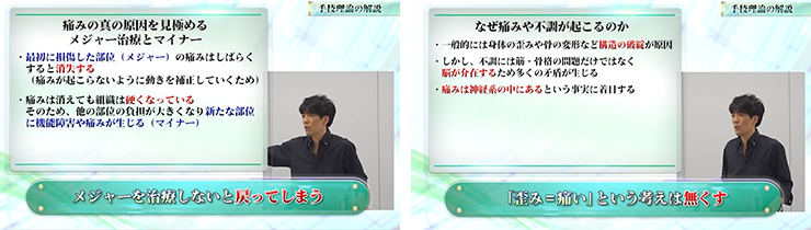 そんな中、悩みとして一番多く聞くのが、いくらやっても患者さんにまだ「痛い」と言われるというものでした。自分が学んできた技術でいくら筋硬結を緩めたり、背骨や骨盤を元の位置に戻しても治らない、そんな患者さんにお悩みの先生はとても多いのが現状です。
