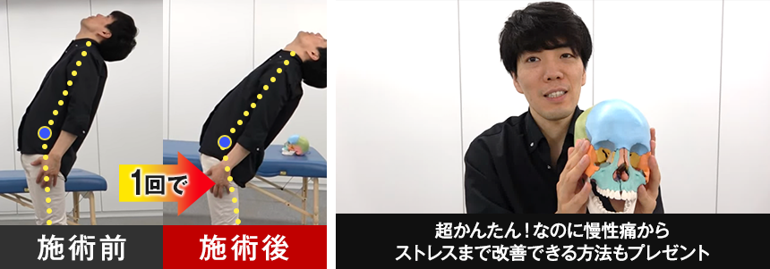 | 【特典3】マネするだけで15分以内に全身調節が出来るようになる施術映像 | 無料で付属 |