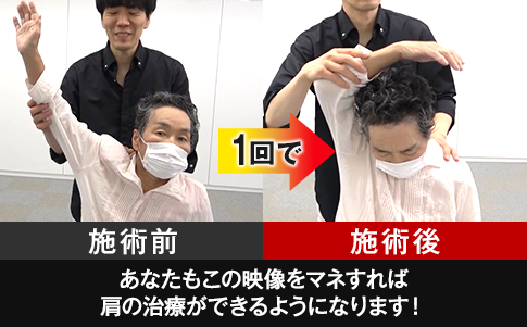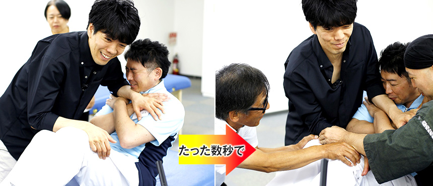 この方法を使えば、たった1回、わずか数秒ばかりの施術で、半身麻痺による肩の激痛や、30年来の腰痛やなど重度の痛みでも関係なく消えていきます。