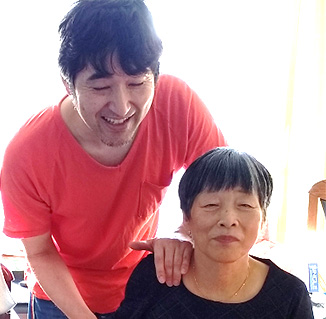 癌の手術による後遺症により背中に穴が開いてしまった患者さん。全身の可動域も悪く、肩もなかなか上がりませんでした。「この痛みが取れたら先生に弟子入りしますよ(笑)」と豪語していました。